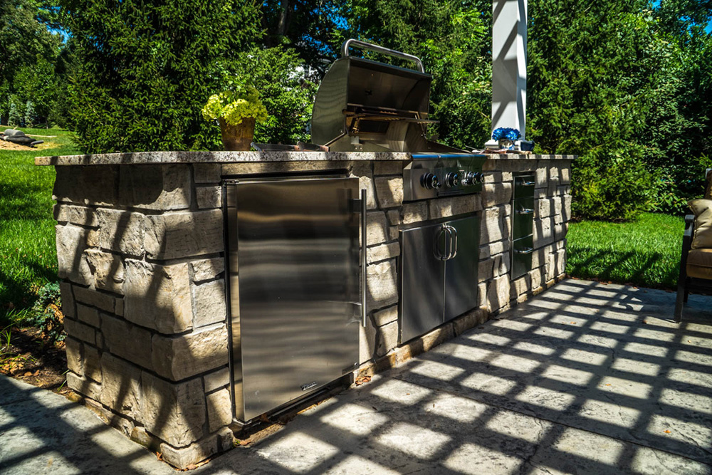 We are well-equipped to design and install the outdoor kitchen of your dreams. Functional use of outdoor space is our specialty and no other outdoor space requires more attention to detail than the outdoor kitchen, from a simple bar top surrounding your grill to a space with all the appliances you would find in any modern indoor kitchen. We can install most brands of appliances and grills and would be happy to work with the vendor of your choice or handle all the details for you. Materials to finish outdoor kitchens come in a wide variety of textures and colors, including the popular stone cladding with granite counter tops.