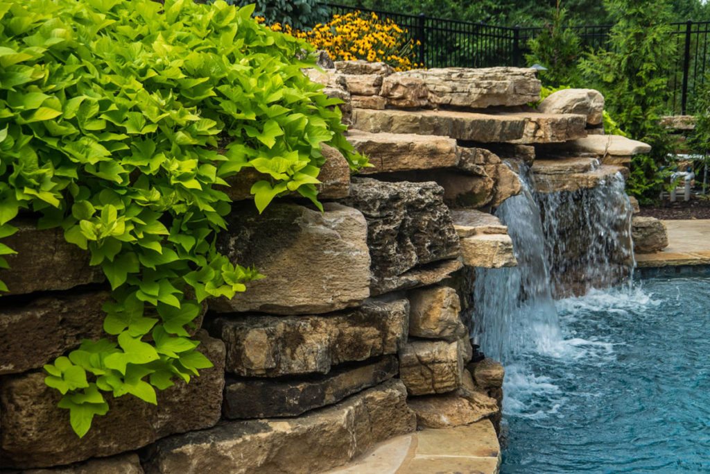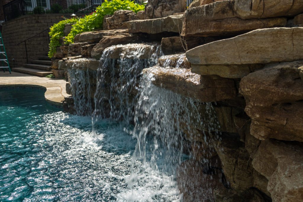 At Poynter Landscape, we design and build pool waterfalls throughout the St. Louis area to be used, climbed on, jumped off and enjoyed by you and your guests for years to come. If this sounds like what you’ve been looking for, give us a call and we’ll show you some great examples of how we have transformed backyard pools into luxury resorts that will have you wanting to stay home for next year’s vacation!